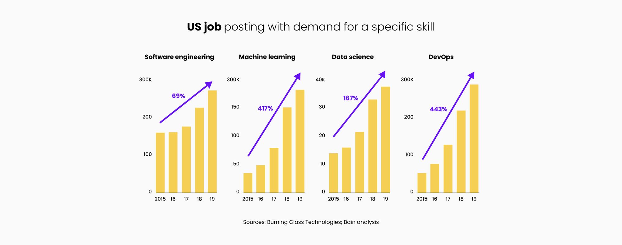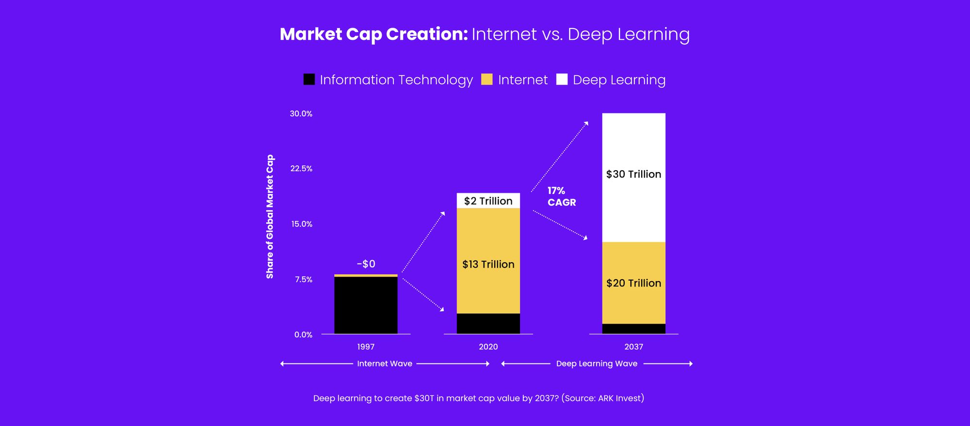 There is a gold rush happening around well-funded ML-driven startups and enterprise AI initiatives. These skills are being seen as critical to the next major evolution in value creation in the overall economy as the chart below shows.
