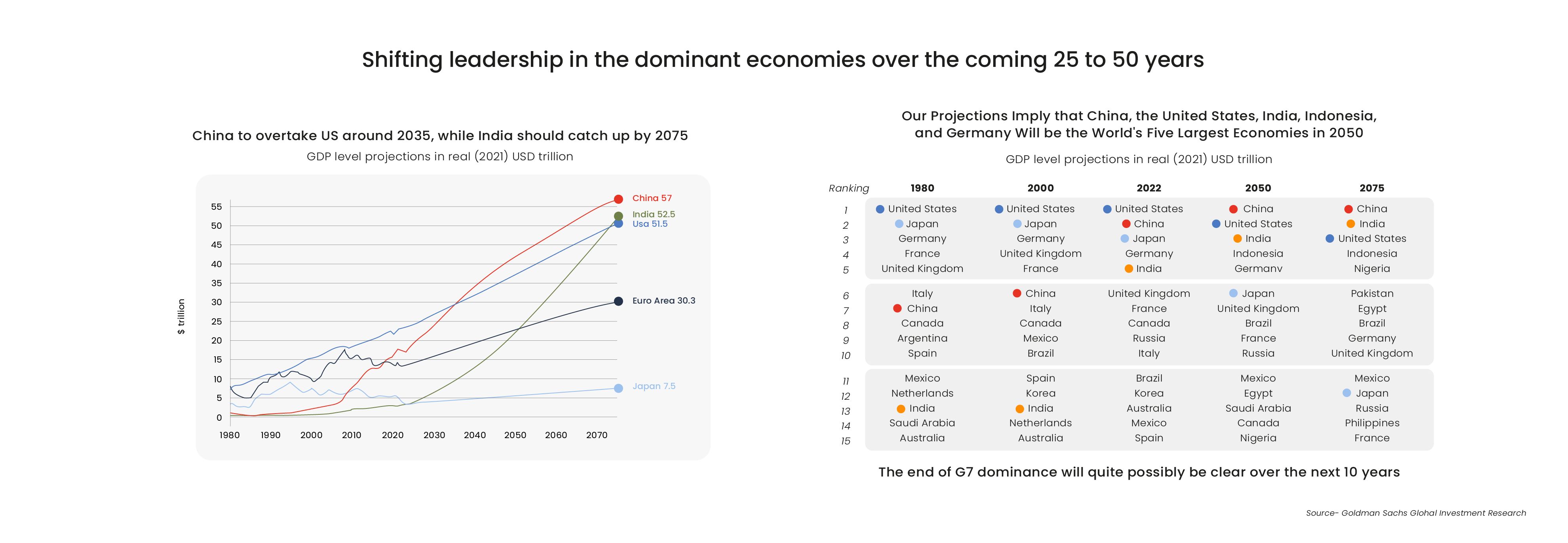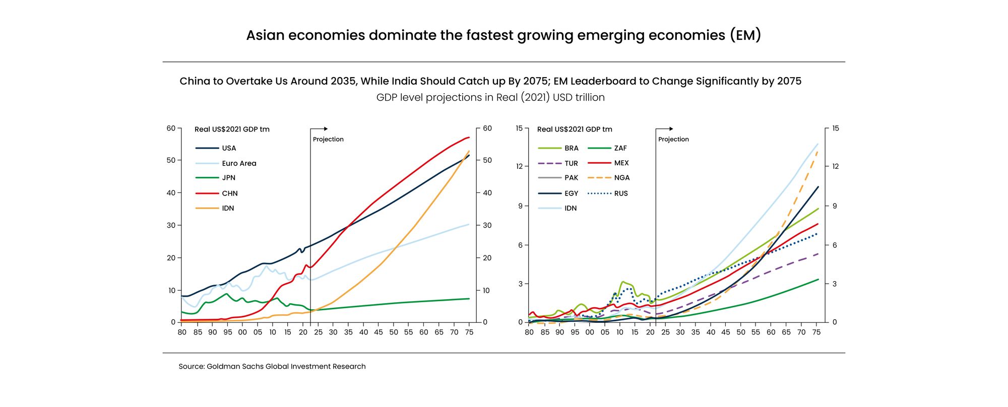 Goldman Sachs was one of the first to point out the emerging rise of the BRIC economies 15 years ago. This forecast has been more accurate for the Asian economies but in their latest research, they expect that growth will be more evenly distributed even though Asian economies will still dominate.