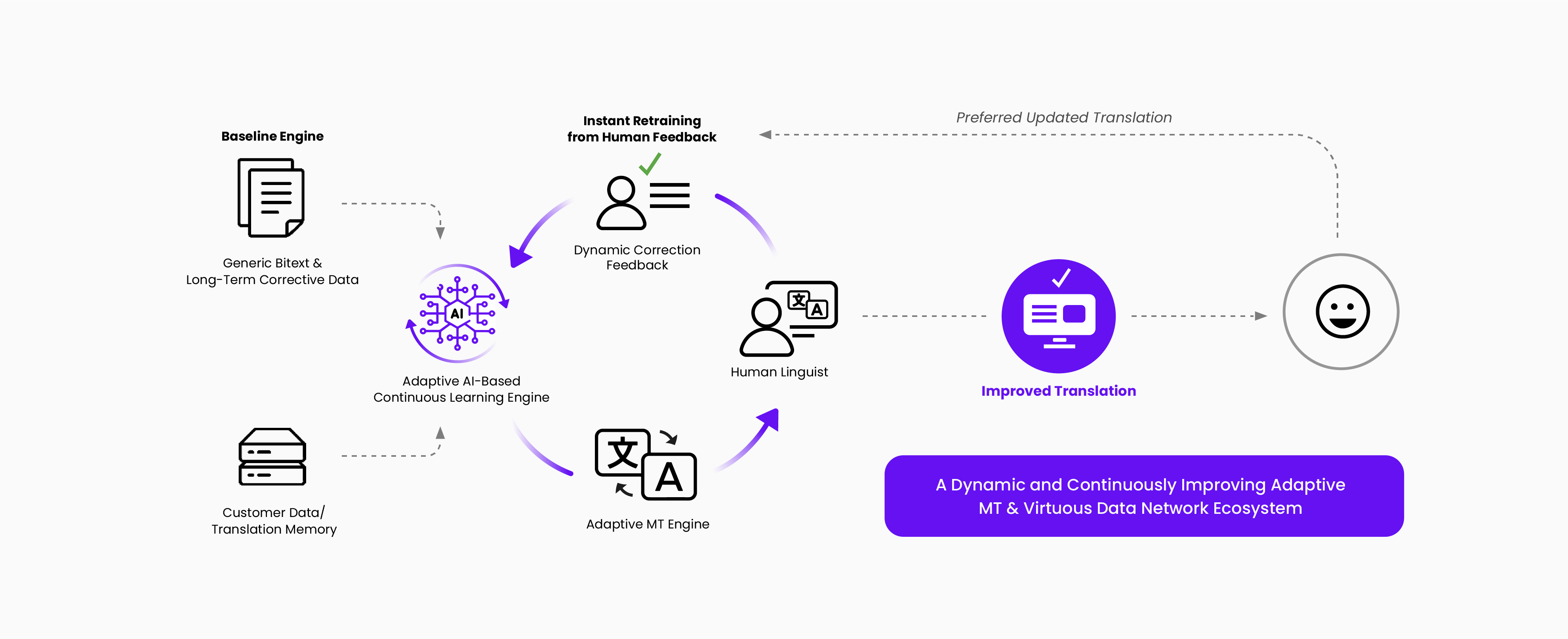 The existence of such a system encourages more widespread adoption of automated translation and enables the enterprise to become efficiently multilingual at scale. The use of such a technological foundation allows the enterprise to break down the language as a barrier to global business success.