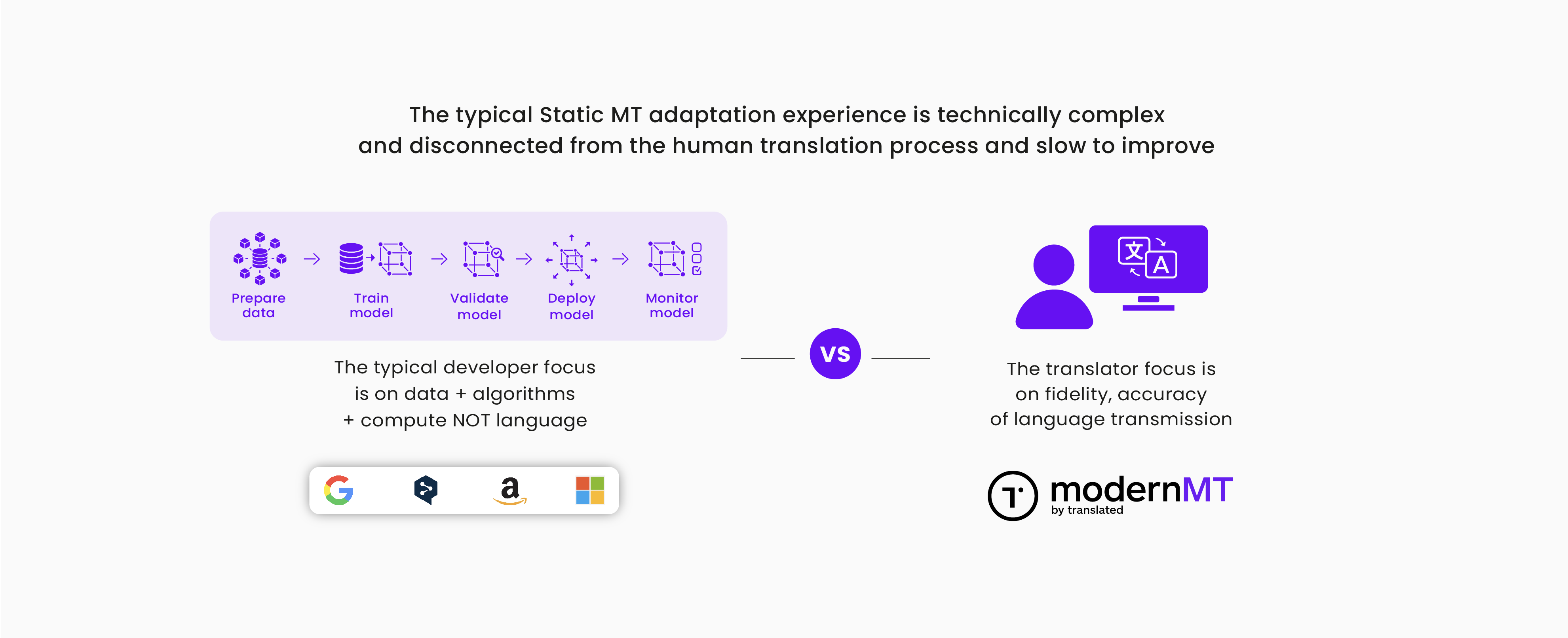 Research analysts have pointed out that even as recently as 2022-23 LSPs and localization departments have struggled with using generic (static) MT systems in enterprises for the following reasons: