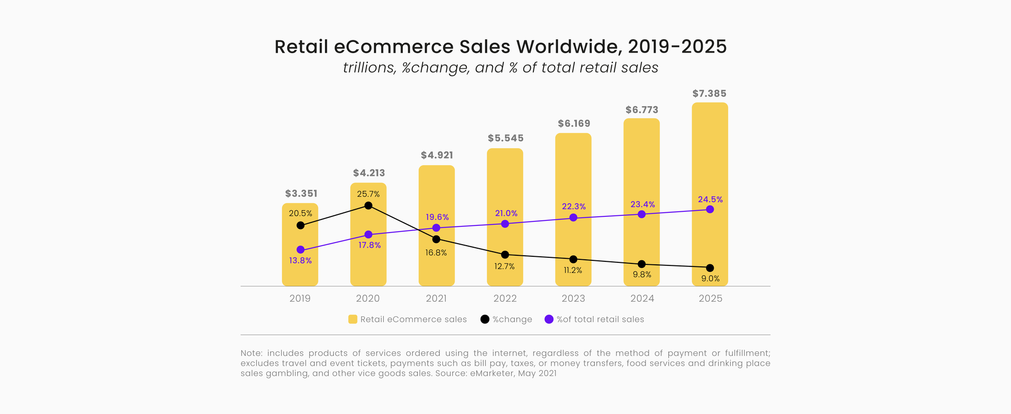 The pandemic restrictions forced consumers and workers around the globe to stay at home and thus dramatically accelerated the shift to online for both B2C and B2B markets.