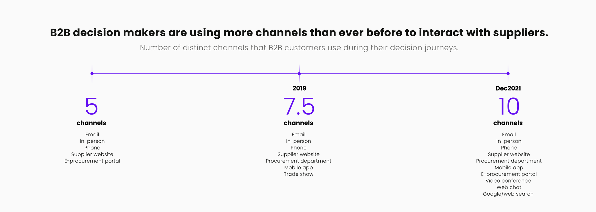 B2B sales are now resolutely omnichannel, with eCommerce, face-to-face, and remote videoconference sales all a necessary part of the buyers’ experience.