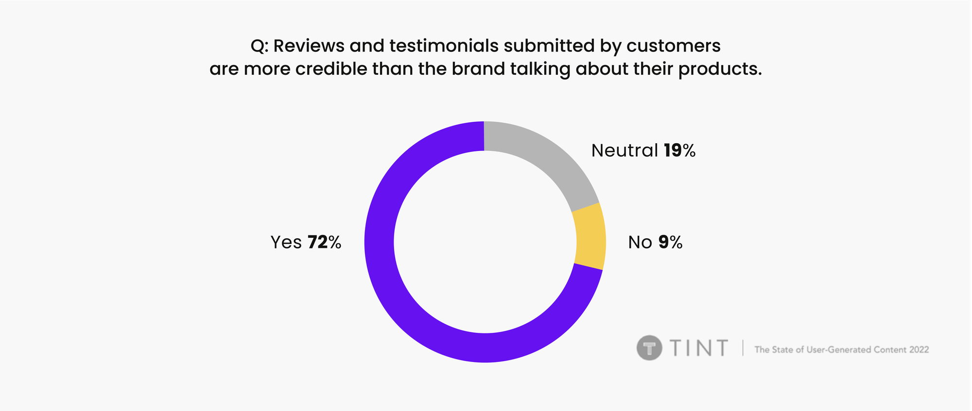 - 72% of consumers believe that reviews and testimonials submitted by customers are more credible than the brand talking about their products.