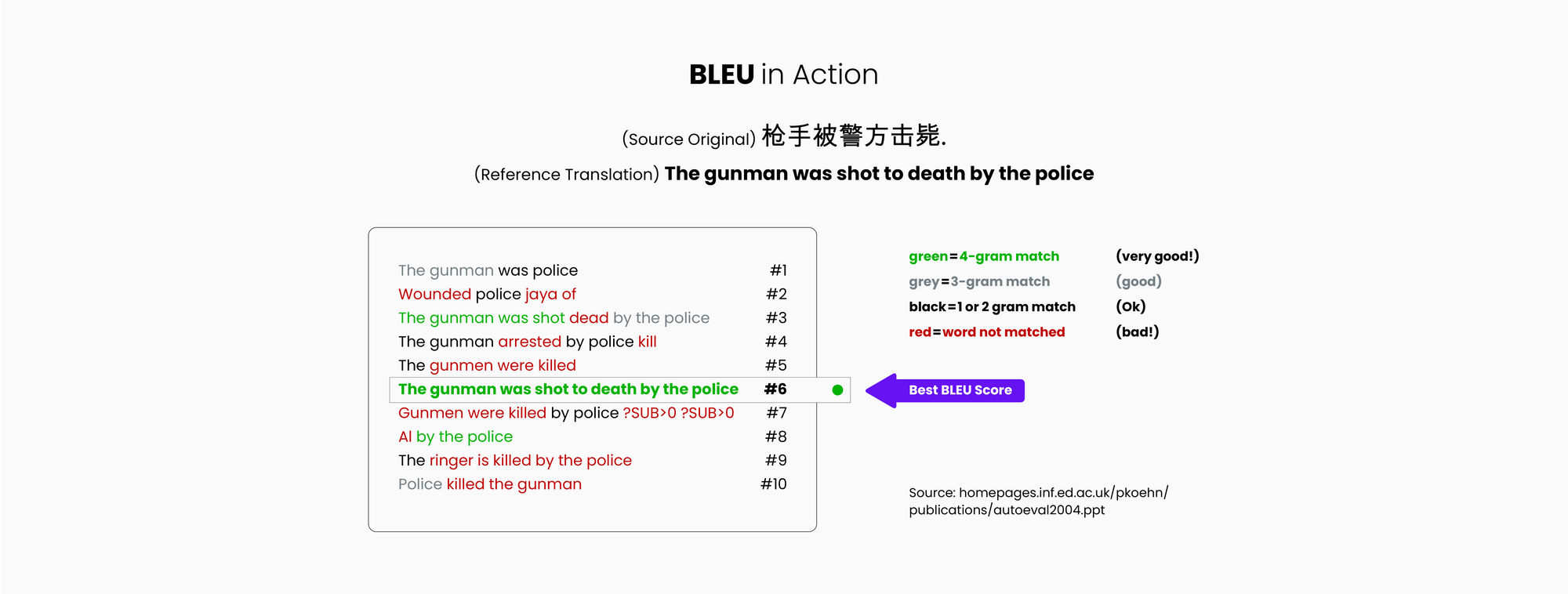 - It’s fast and easy to calculate, especially compared to having human translators rate model output.