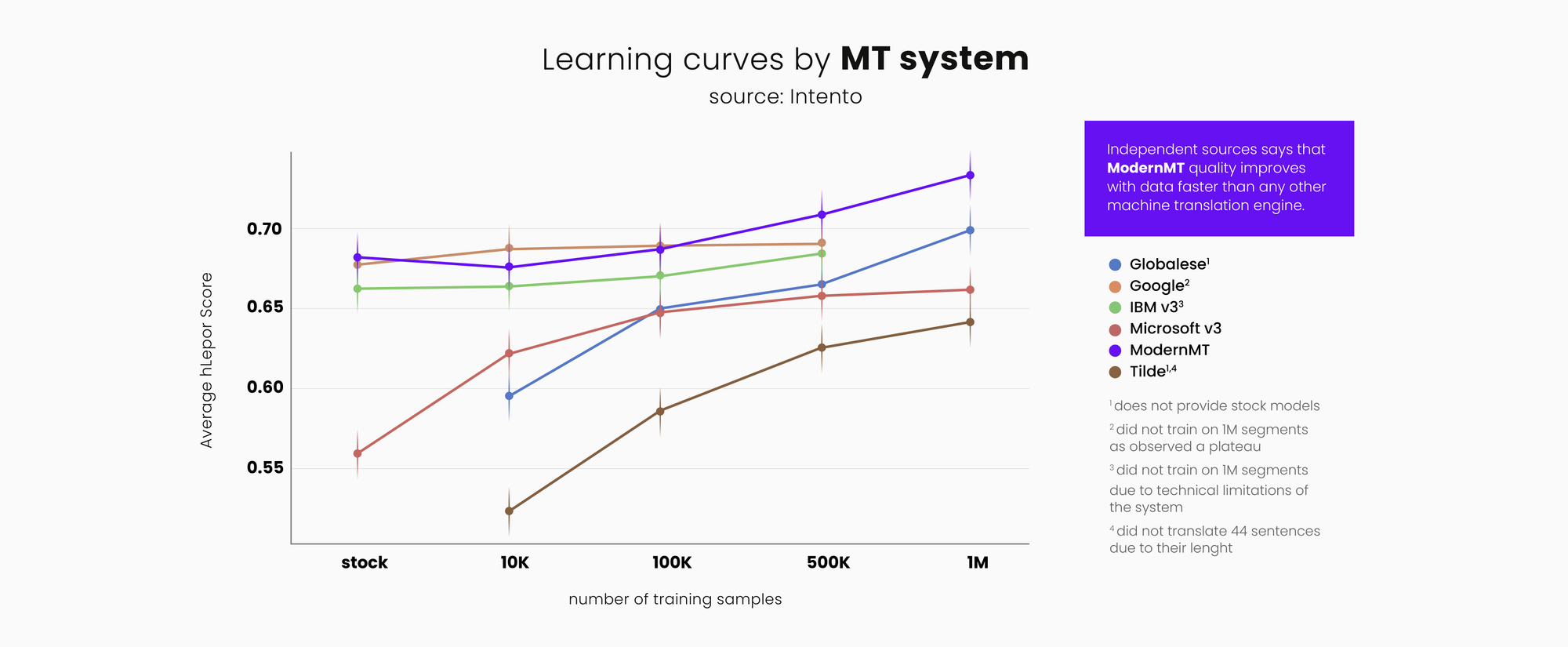 Additionally, MT technology is not static: the models are constantly being improved and evolving, and what was true yesterday in quality comparisons may not be true tomorrow.